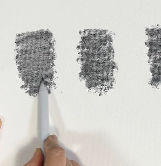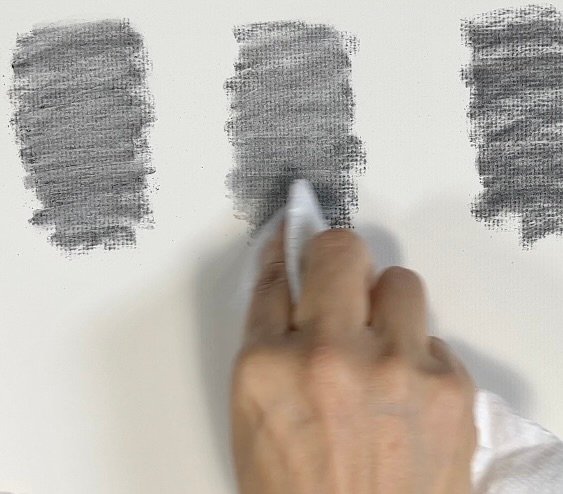 Use the eraser as a charcoal lifting tool to create highlights and refine forms.